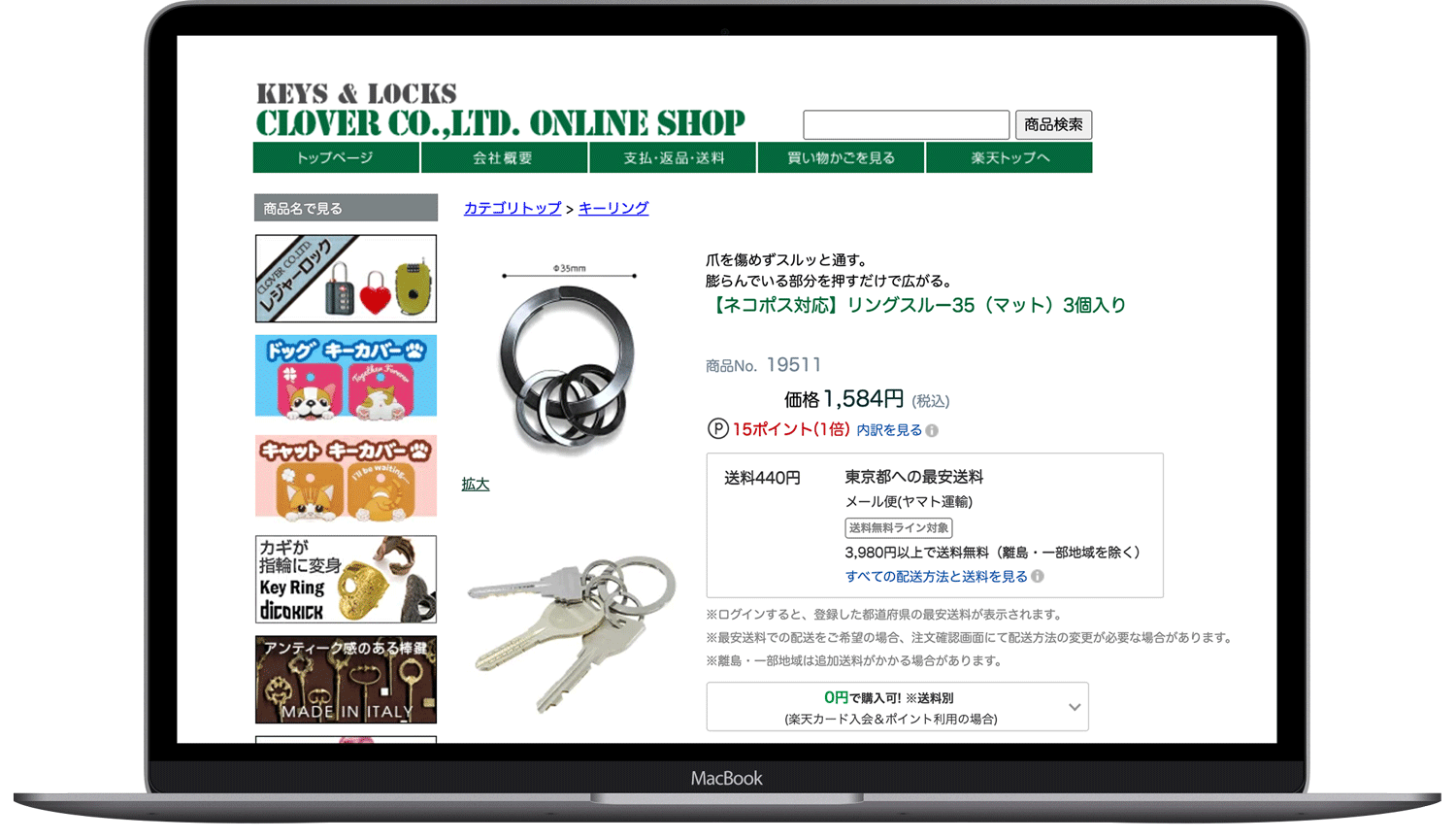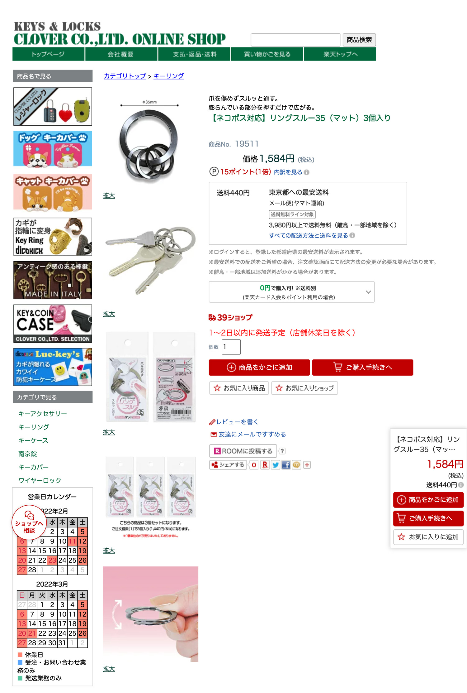 合鍵材料(ブランクキー)の製造をしている株式会社クローバーの楽天市場の運営に参加していました。